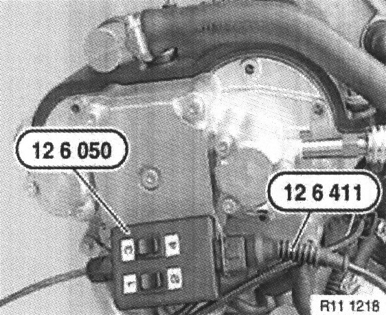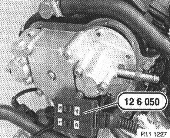 Connect special tool 12 6 050 in conjunction with special tool 12 6 411 to solenoid valves of VANOS adjustment unit.