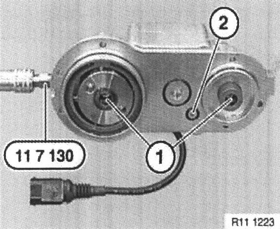 Before the VANOS adjustment unit is removed, the camshafts an the VANOS adjustment unit must be set with the Diagnosis and Information System (DIS) to the assembly position.