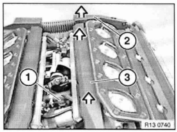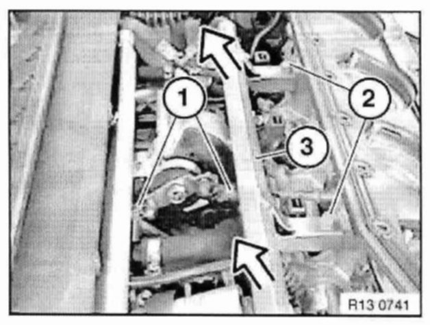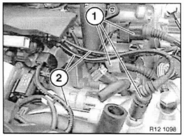 Unclip cable strip (3) from injector valves, push upwards and tie back with cable ties (e.g. to engine hood).