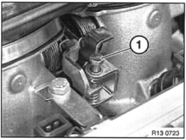 If the pull rod length has to be checked or adjusted or the pull rod has to be replaced, press the pull rod off the ball head on the throttle side. Open throttles to do so. Work carefully, do not bend throttle lever.