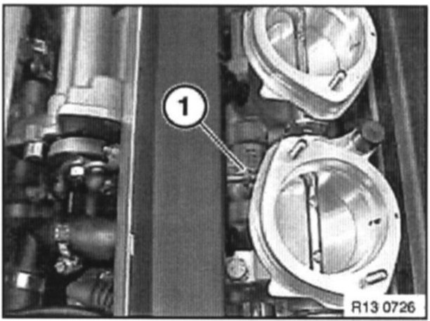 Clip in adjustable pull rod (2) of cylinder bank 1-4 on throttle side only.