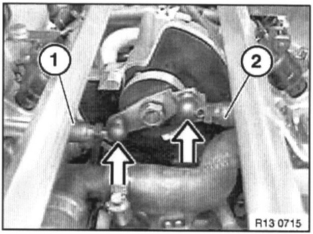 The non-adjustable pull rod (1) of cylinder bank 1-4 is replaced by an adjustable pull rod (2) (versions as on cylinder bank 5-8).