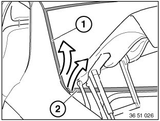 Caution: Remove dirt from residual glue with Sika-Entferner 208 (sourcing reference: BMW Parts Service) before glue is hard. Do not press out rear window glass again for this purpose. Hardened glue can only be removed by machine.
