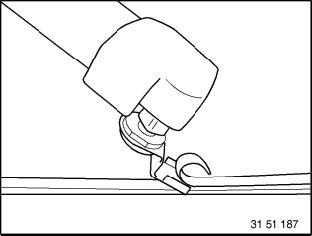 Install rear window carefully using special tool 51 3 010. The gasket must make uniform contact all round (center). Press rear window upwards until gasket is at uniform distance from roof all round.