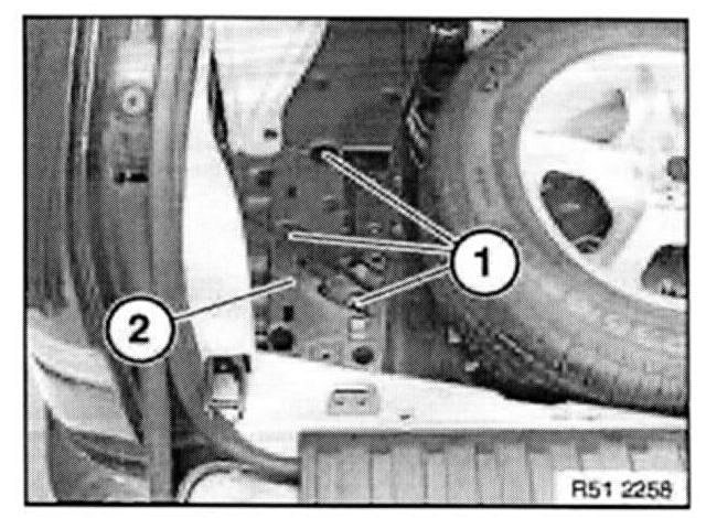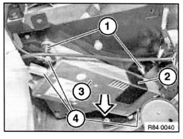 Remove retaining bracket (2) and transmit-receive unit (3) in direction of arrow.