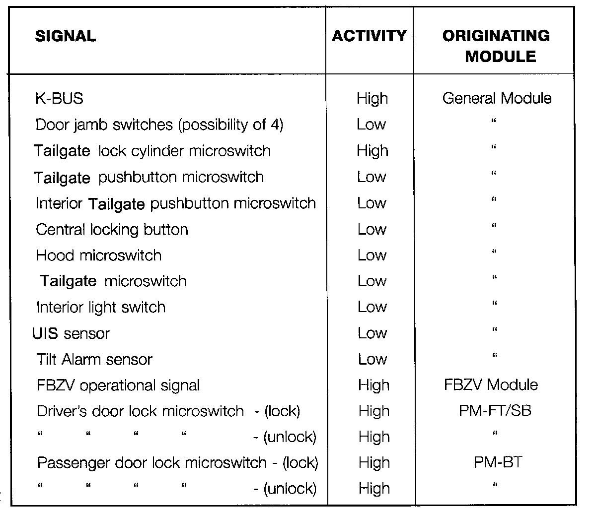 All modules in the ZKE system will go into the sleep mode. The P-Bus remains active, however no data transfer takes place until a wake-up request is received. The general module, door modules or keyless remote module can wake the system up and put the ZKE back on line. The K-Bus is not active in the sleep mode, however the GM III of Remote Entry Module can put the K-Bus back on-line with a wake-up request.