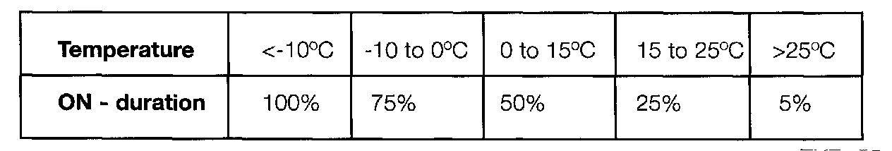 A pulsed heating cycle is used for the mirrors based on the outside temperature.