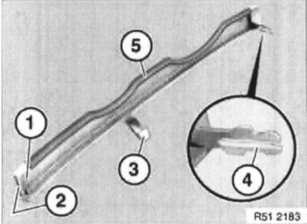 Mount (2) and hooks (3) and (4) of trim (1) must not be damaged.