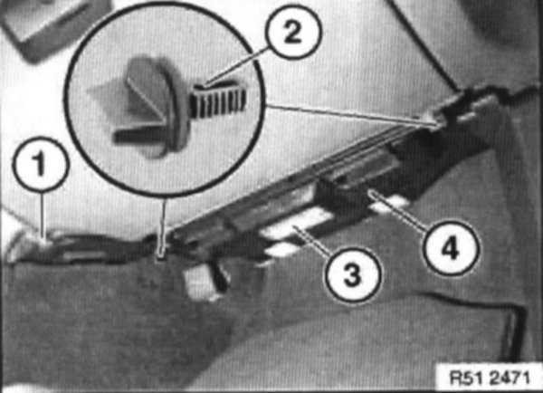 Lower trim (4) a little and disconnect plug connection for footwell light (3).