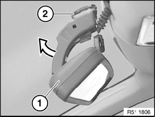 - Do not pull off rearview mirror (1) from windscreen against direction of travel and or snap out by turning.