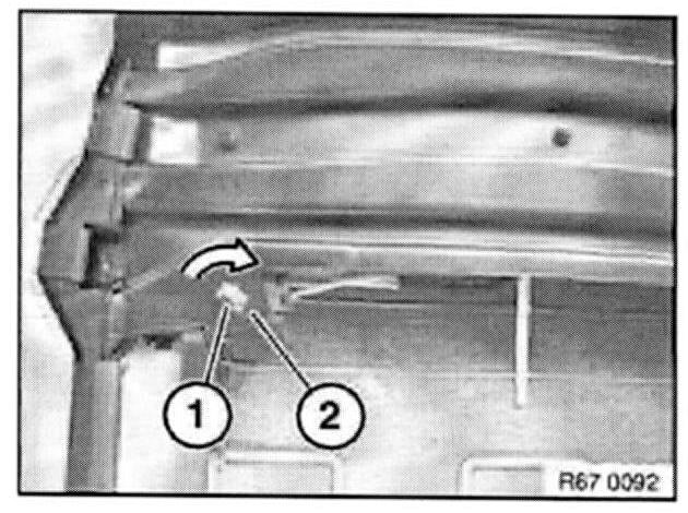 Turn plug connection (1) in direction of arrow and disconnect from backrest frame (2).