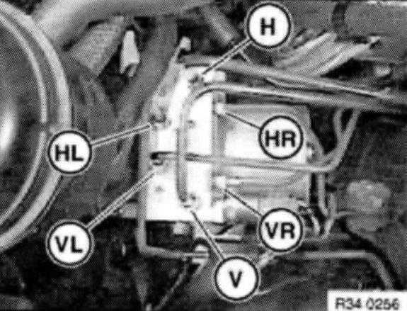 (RL) from hydraulic control unit RL to rear left wheel brake