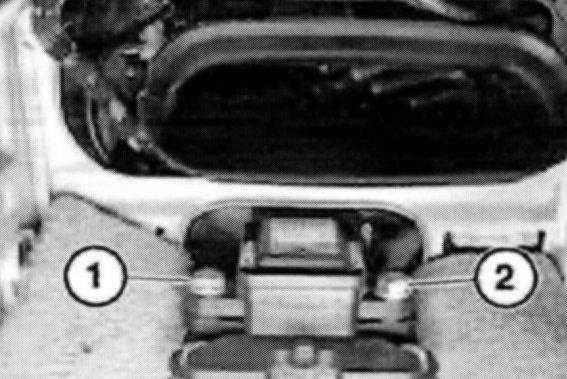 Release screws (1) and (2).