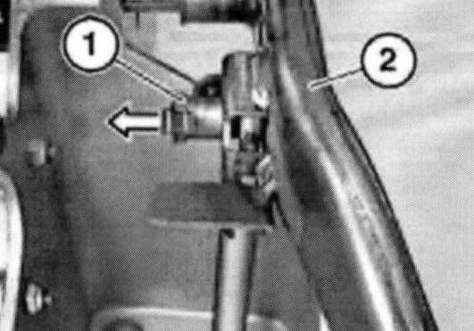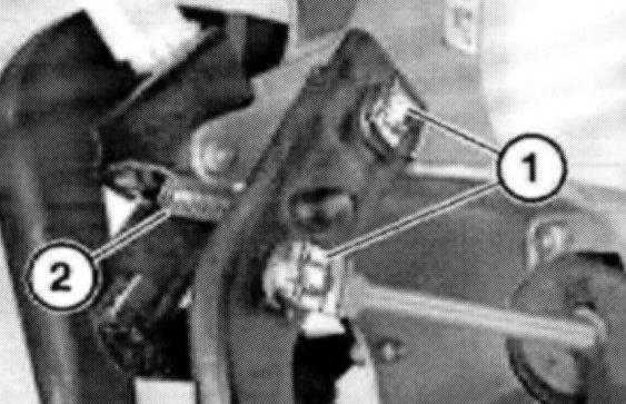 Pull out retaining pin (1) and detach piston rod from brake pedal.