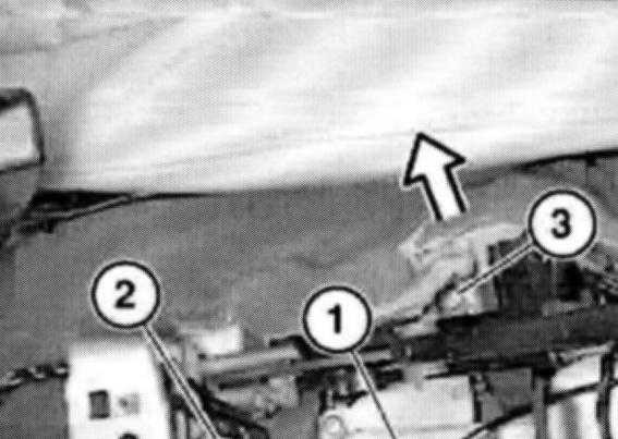 Release screws (2 and 3) and remove handbrake lever.