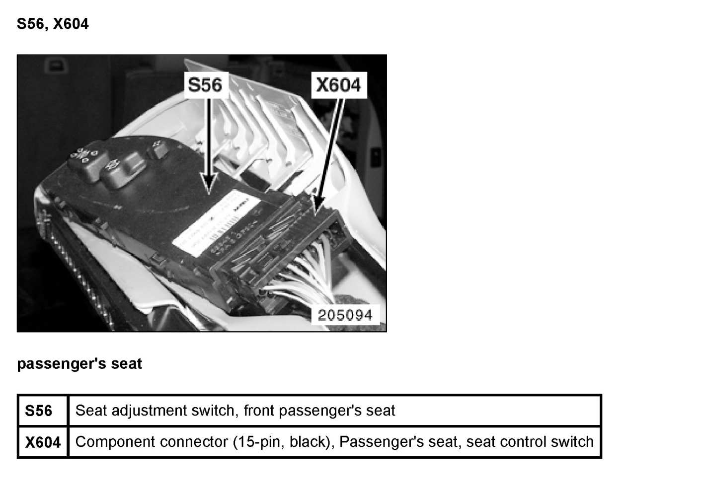 S56 Switch, Seat Adjustment, Passenger