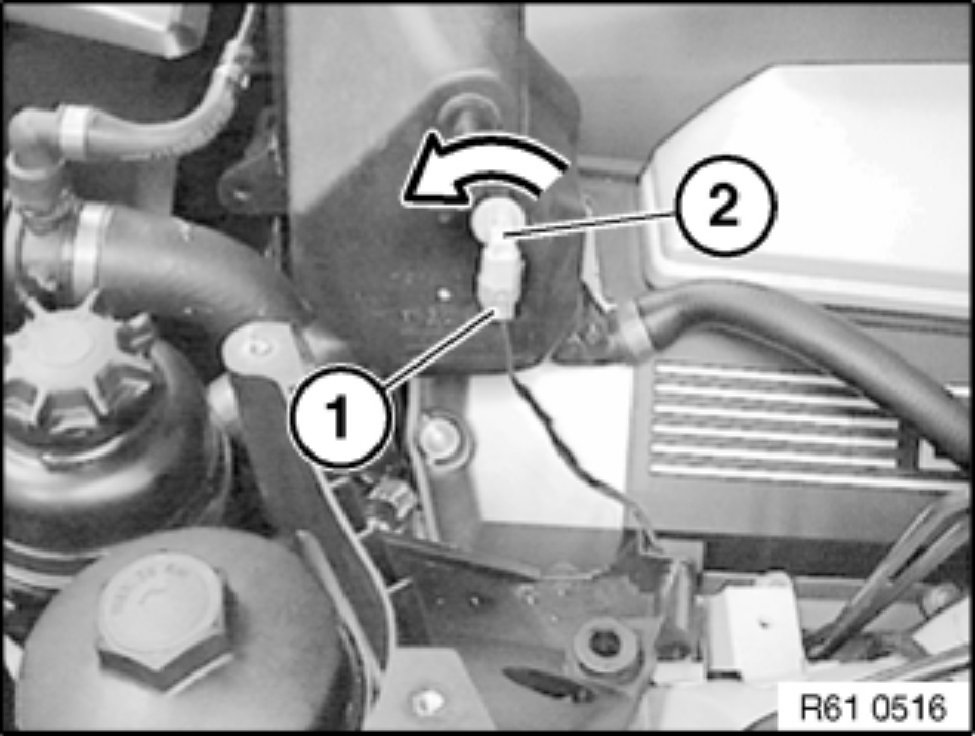 Turn coolant level switch (2) approx. 90 degrees in direction of arrow and pull out.