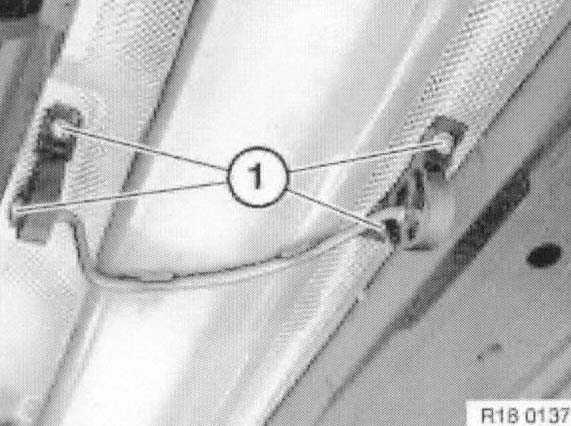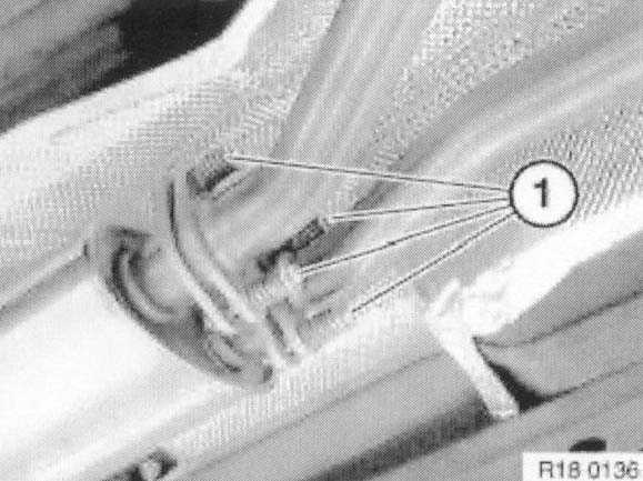 Release screws (1) on rubber mounts and remove intermediate muffler.