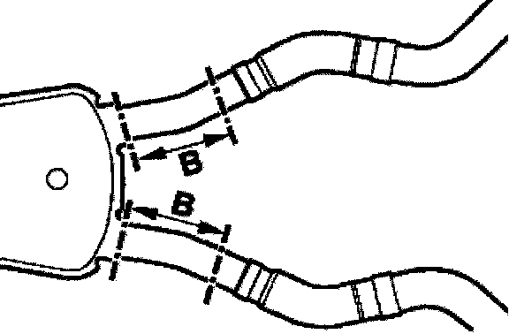 Cut through and deburr both exhaust pipes at determined point between catalytic converter and intermediate muffler with special tool 00 2 210.
