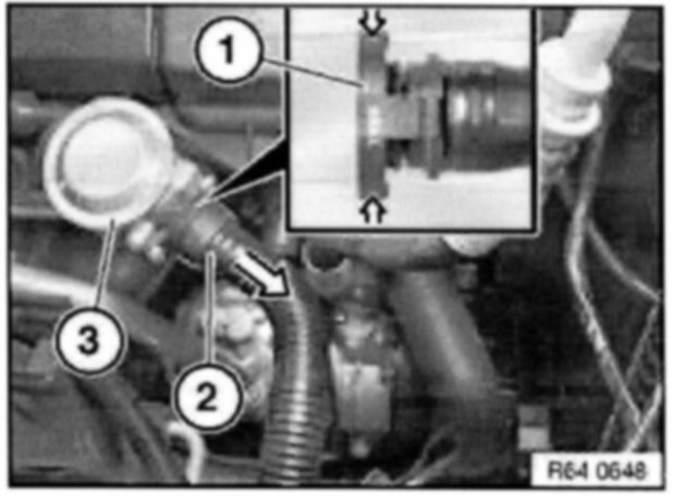 Press ring catch (1) together, detach pressure hose (2) in direction of arrow from shut-off valve (3) and lay to one side.