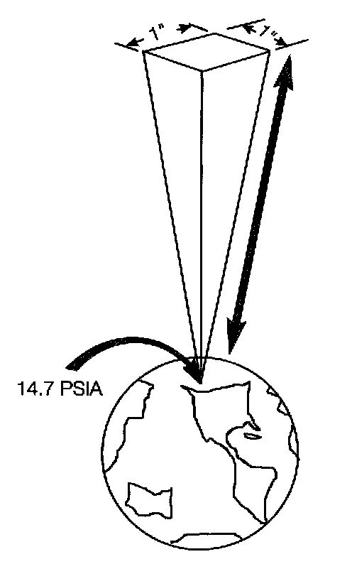 Of course, you don't notice the 14.7 psi pressing in on everything, and air pressure gages are calibrated to read 0 psi at atmospheric pressure. But this atmospheric pressure exists, and you can feel its effects, particularly at higher elevations; for example, if you exercise vigorously, at a high elevation, you become winded more quickly.