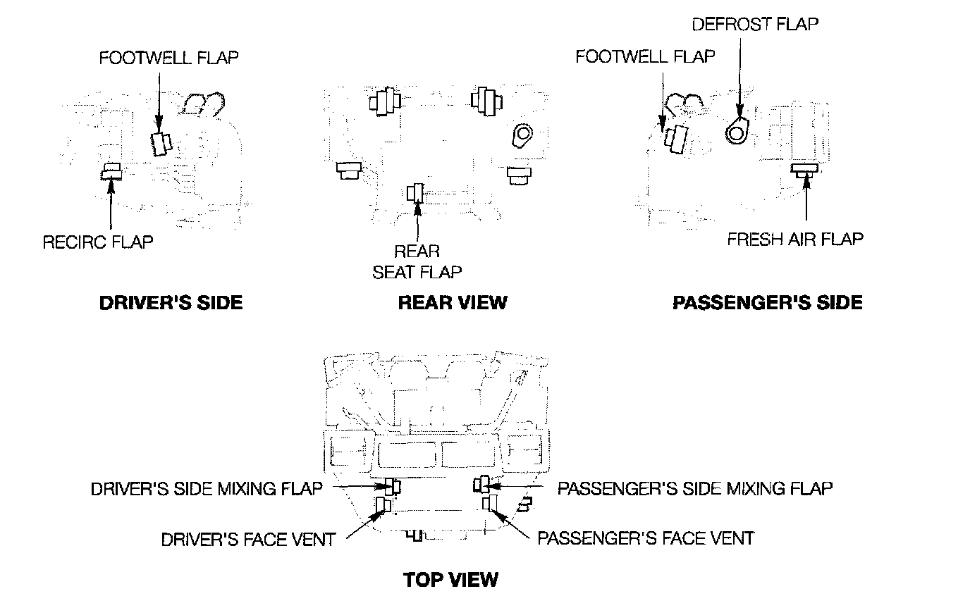 Of these 10 stepper motors, the Fresh Air Flap stepper motor is operated as on previous systems. It has four circuits that control the motor rotation with a 500 Hz signal at each circuit as needed.