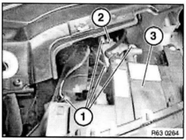 Release screw (2) and remove retaining bracket for xenon control unit.
