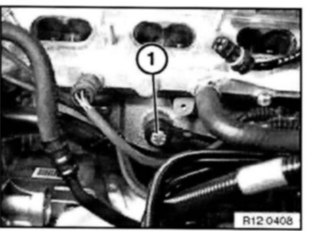 Release screw (1) and remove knock sensor for cylinder bank 1-3.