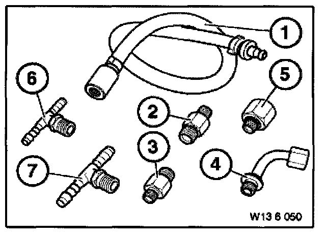 NOTE: For connecting reducers 13 6 052, 13 6 053, 13 6 55 and adapters 11 4 050, 11 4 160, 11 4 170, 13 5 131 to BMW DIS