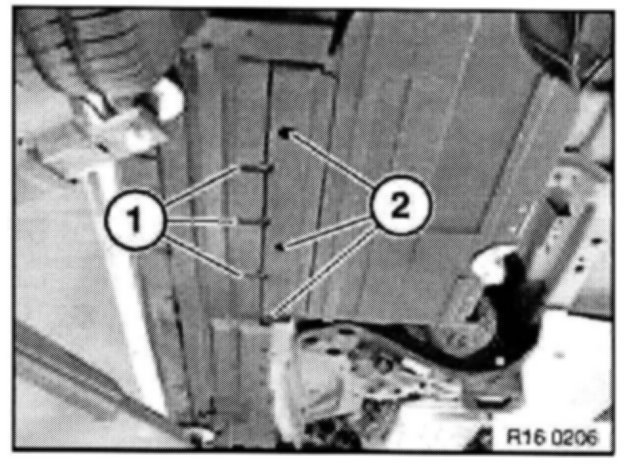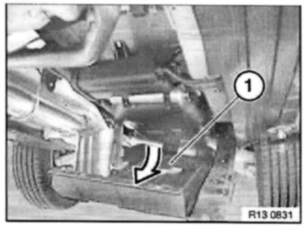 Lower fuel tank underbody protection (1) only until access to fuel filter/pressure regulator is unhindered.