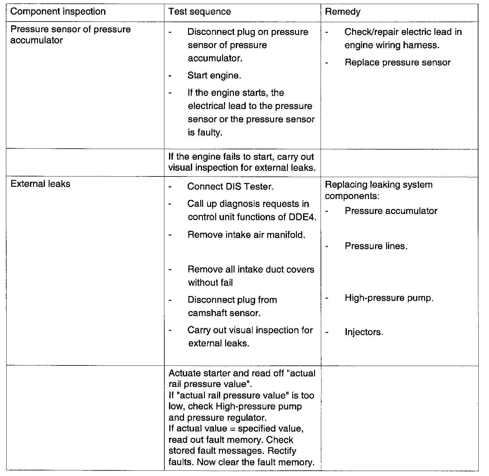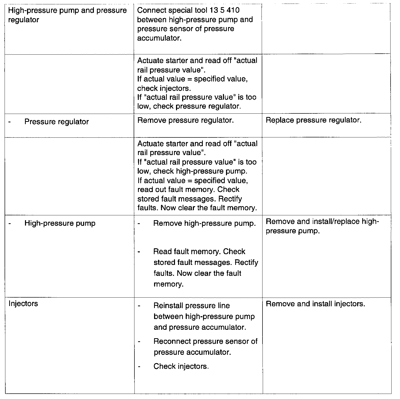 Troubleshooting On Common Rail System With Insufficient Pressure (Engine Does Not Start)
