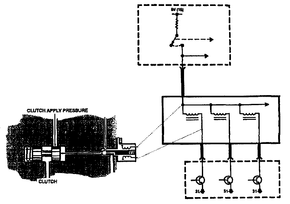 Power to solenoids 1, 2 3 is supplied by the TCM. The valves are activated by a TCM controlled switched ground. The TCM is programmed to activate the solenoids in the specific sequence for gear selection.