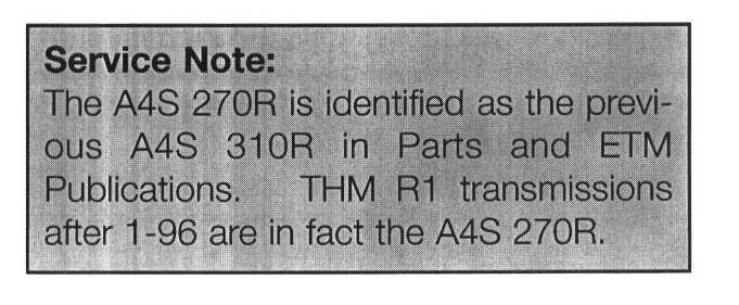 The A4S 270R transmission is identical in mechanical function and component layout as the A4S 310R.