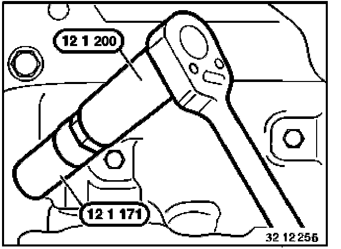 Unscrew and remove spark plugs with special tool 12 1 171 in conjunction with special tool 12 1 200.