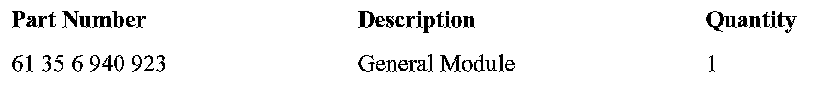 In case of customer complaint, replace the General Module with P/N 61 35 6 940 923.