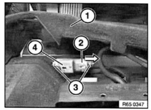 Arrow on impact sensor for side airbag (4) must point to sill.