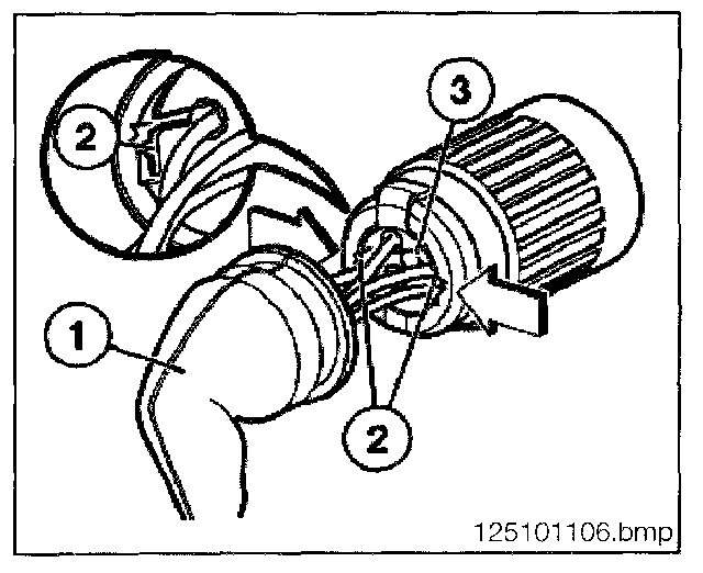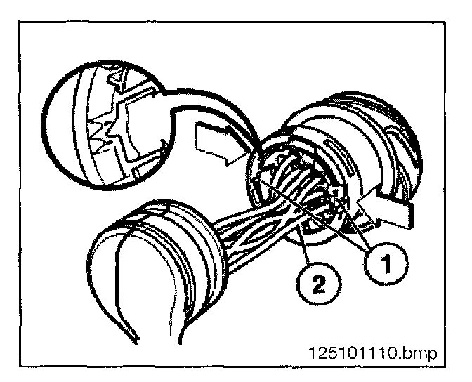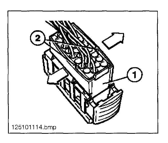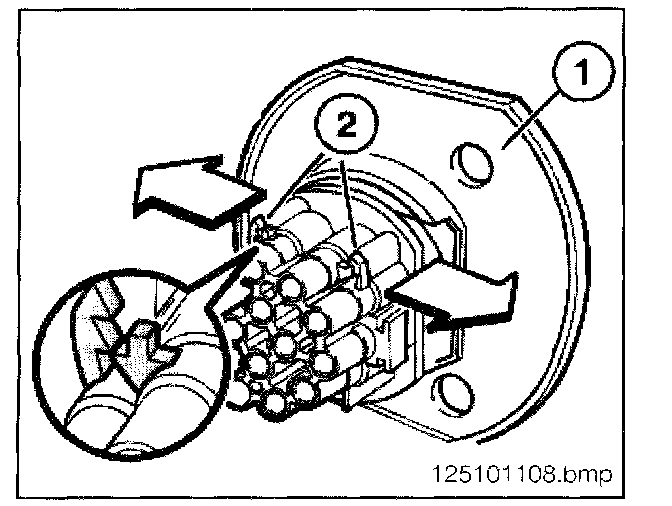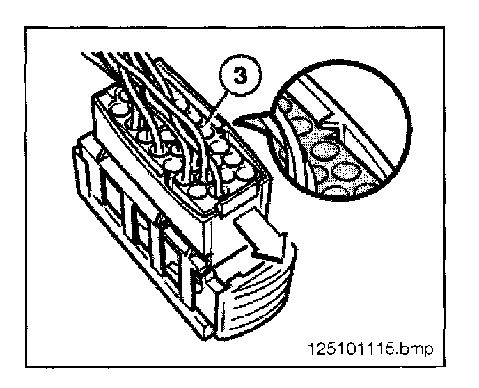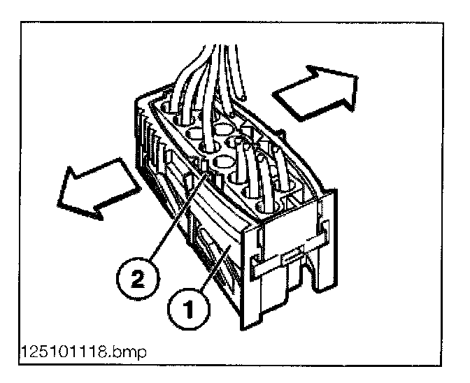 - Using special tool 61 1 132 press the spring latch down and pull the connector (3) from the housing.