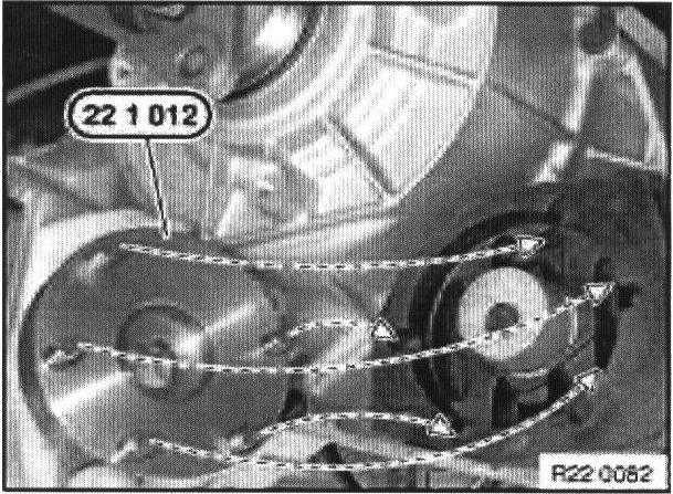 Position special tool 22 1 016 on opening (2) and twist in screw (3) hand-tight against housing.