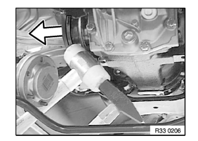 33 11 091 Replacing left or right drive flange on rear differential (168K to 230K)Warning: Risk of burning from exhaust system!