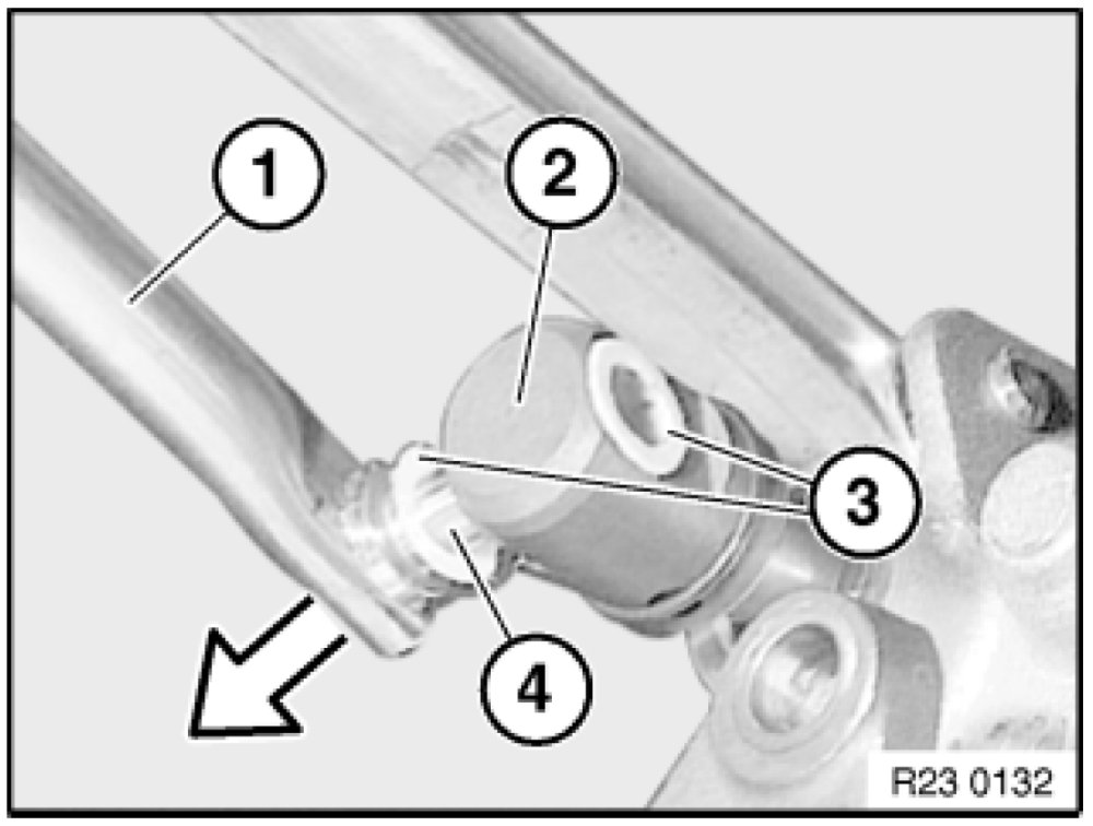 - Check rubber ring (1) in shift rod joint (2) and replace if necessary.