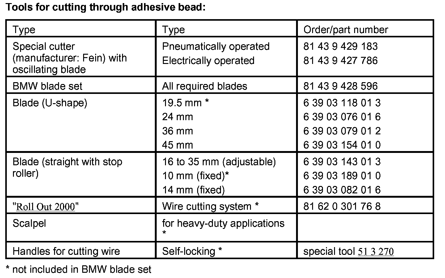 When using cutting wire, pull cutting wire ends through special tool 51 3 270, bend and tape off with fabric adhesive tape (e.g. Tesa) (risk of injury and damage).
