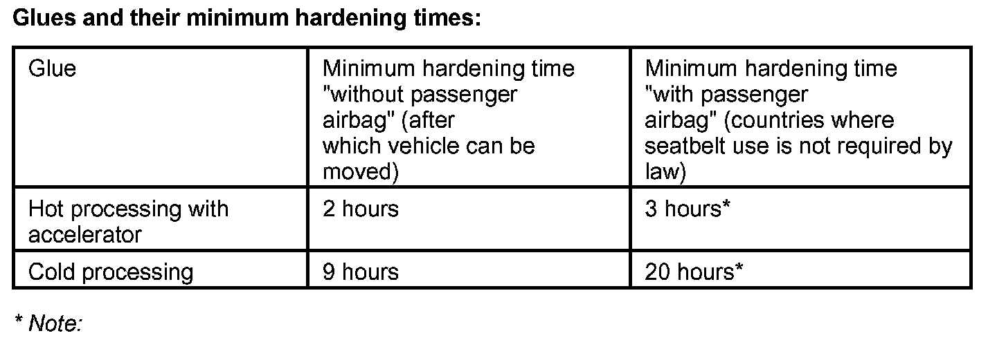 The vehicle can be handed over to the customer after the hardening period (vehicle can be moved, adhesive-dependent) with the following warning: