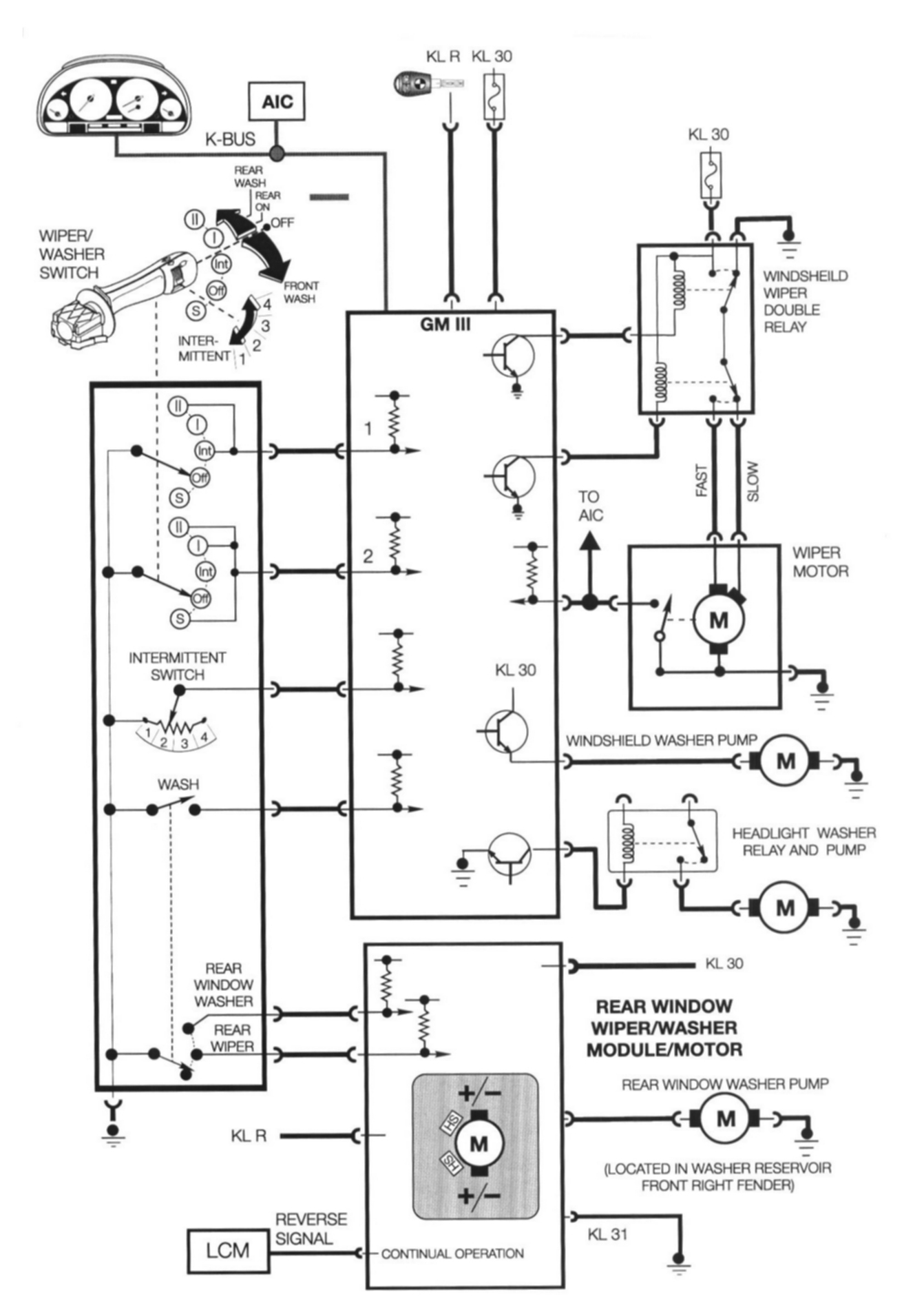 - The GM III controls all of the windshield wiping/washer and headlight washing functions.