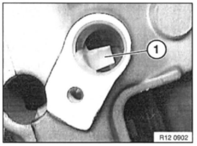 Rotate the crankshaft at the front central bolt so that a full pulse tooth (1) can be seen through the opening in the removed pulse generator. Make sure that the pulse tooth (1) is exactly centered in the hole.