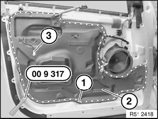 In event of replacement or partial detachment, lay butylene tape (sourcing reference: BMW Parts Service) on inner door plate or sound insulation.