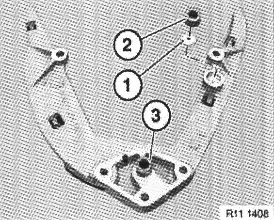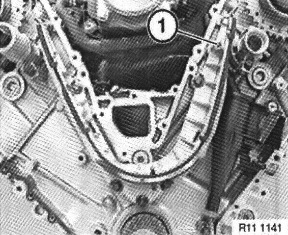 Note: Engines in E53 (X5) have an external oil separator. Grub screw ( 1 ) is not fitted.