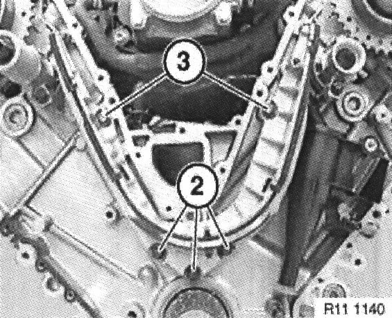 Note: Install timing chain inside screw-in pin ( 1 ).