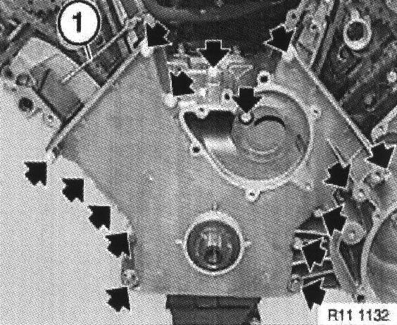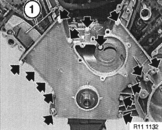 Removing and installing timing case cover, bottom (M62 VANOS from 9/98)