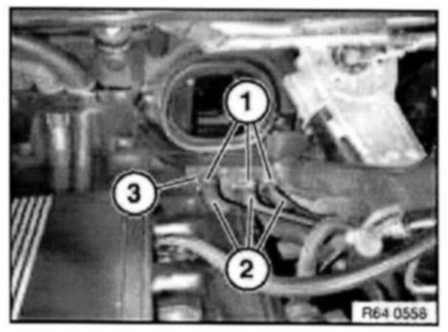 Detach water hoses (2) from flange (3). Carefully blow through lines to remove remaining coolant from heating element.