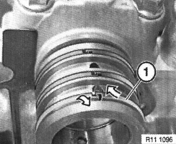 Feed in new gasket so that it is secured in groove on camshaft bearing cover and over non-return valve (1).